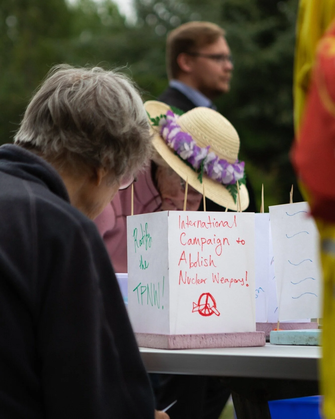 We support the International Campaign to Abolish Nuclear Weapons (ICAN) and participated in the negotiations leading to the Treaty on the Abolition of Nuclear Weapons. We participate in the ICAN Cities Appeal by giving presentations to local municipal councils.